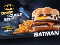麦当劳日前在香港带来一款蝙蝠侠汉堡,同时还推出了作为搭配的唧唧芝士薯条和青苹果苏打茶。这款蝙蝠侠汉堡内有两块肉饼、煎鸡蛋、葱与酱汁,外则有蝙蝠侠特别包装呈现。而麦当劳也为之推出了一则宣传广告,超级英雄