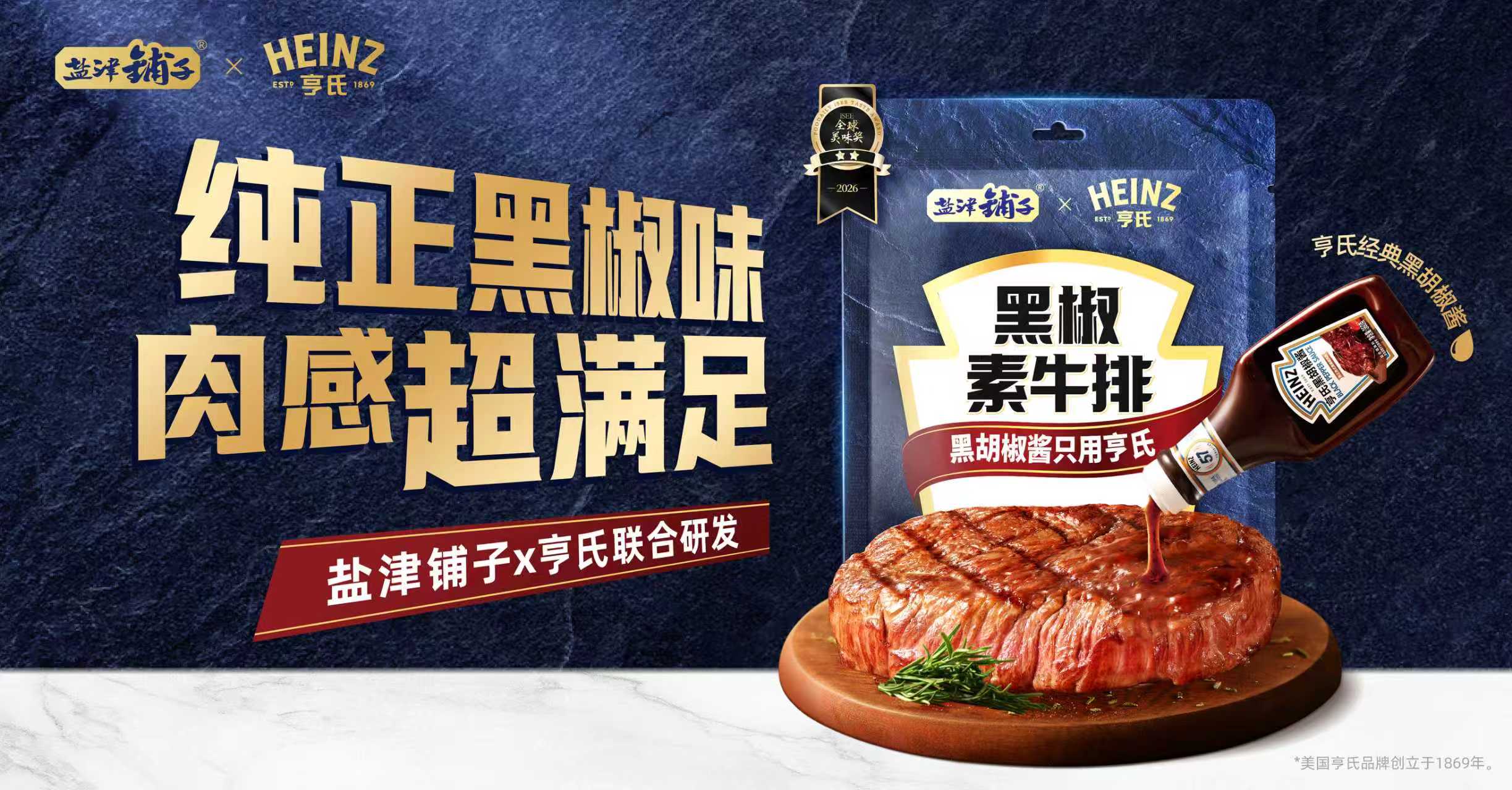 盐津铺子×亨氏联名上新「黑椒素牛排」