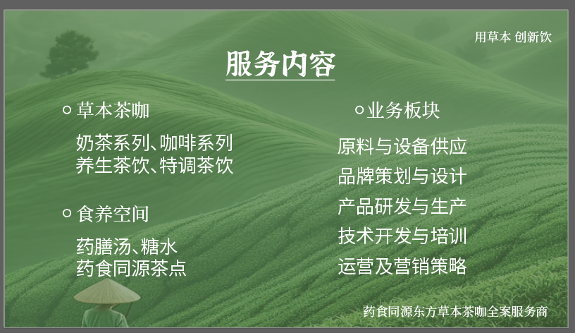 方案亮点:一站式提供药食同源草本茶咖品牌开店服务及供应链
