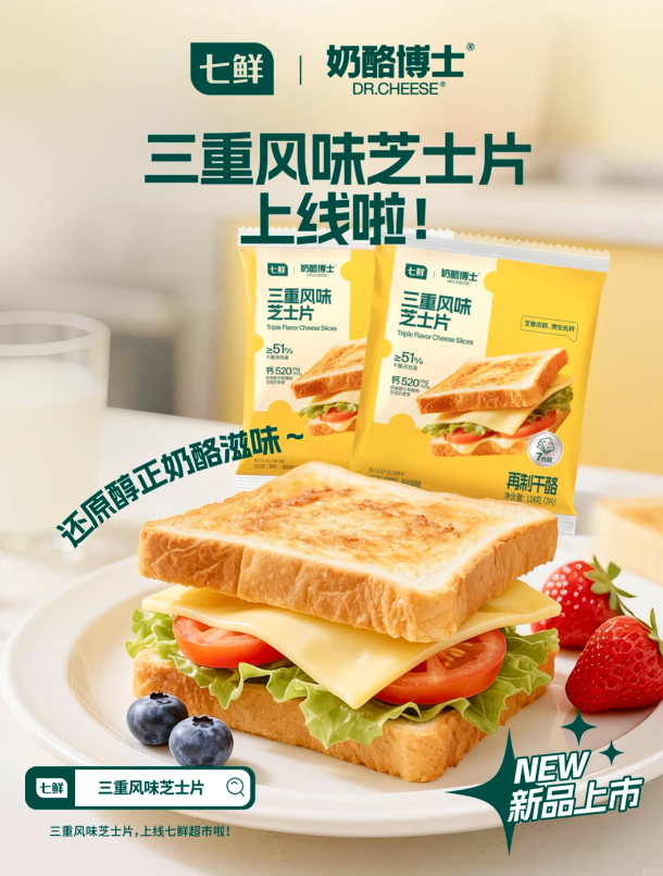 奶酪博士×七鲜联名上新「三重风味芝士片」