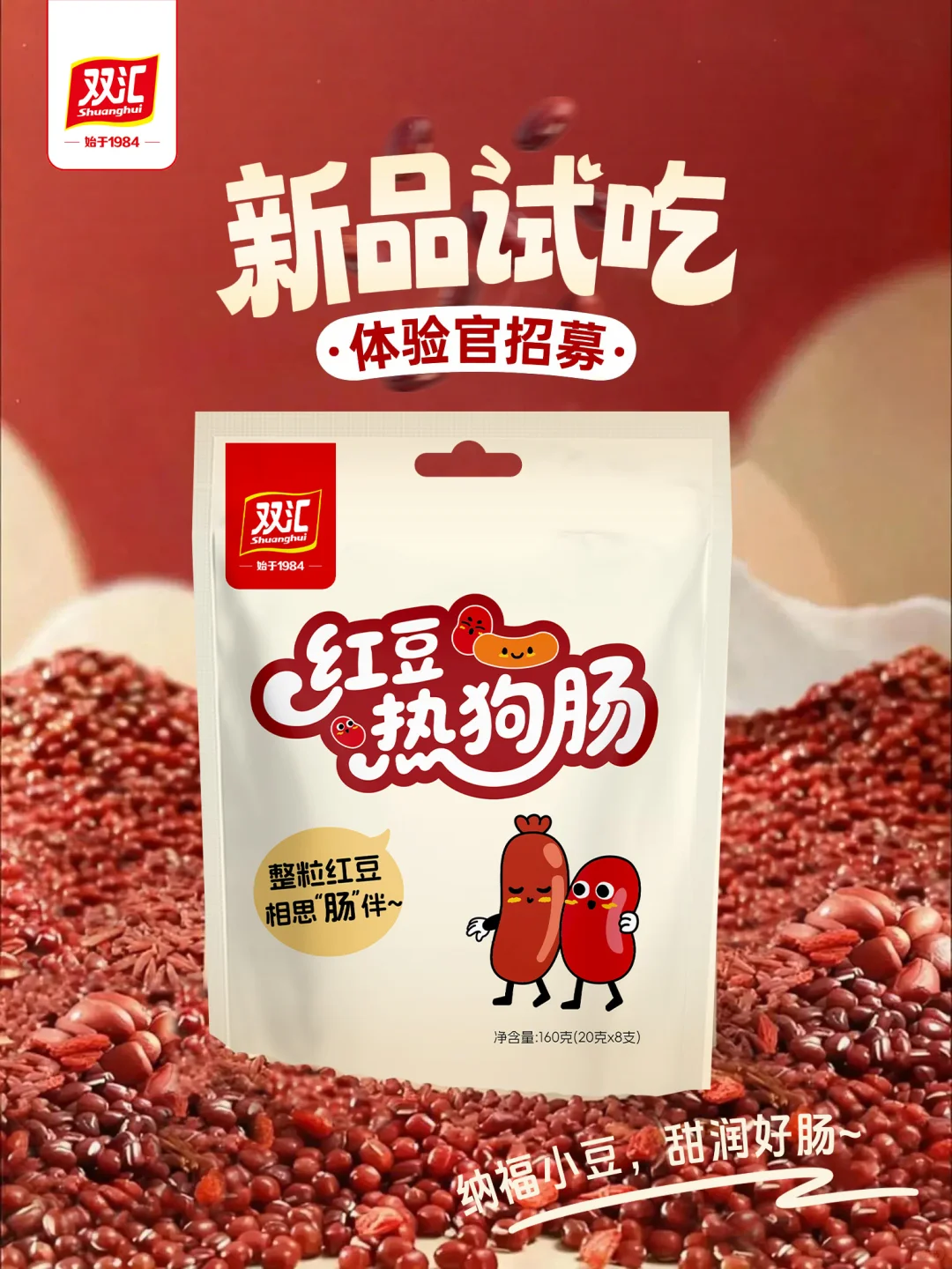 近日,双汇推出「红豆热狗肠」新品。据了解,新品添加了整粒糖纳红小豆(含量≥4%),搭配双汇品质肉源,口感咸香甘甜,层次丰富,适合下午茶、社交聚会、甜点搭配等多种场景。