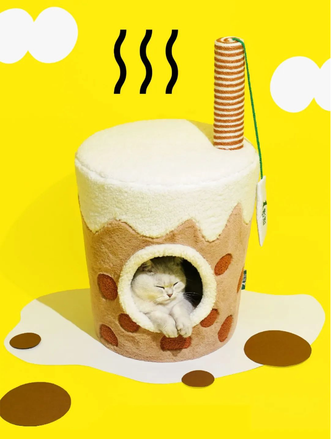 12月28日,1点点 x zeze x 味全联合推出”趁热拿铁,暖暖猫窝“限量套餐。大奶茶桶设计,柔肤面料,半封闭造型,大空间,可容纳15斤的猫咪。洞口处有可抓可咬的Q弹波霸,吸管为优质麻绳,耐抓磨,同时还有1点点可爱logo响纸,桶身内胆则选用结实的pvc板,柔软不易塌陷。目前,该套餐活动仅限上海、广州两座城市。原文链接