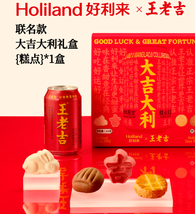 12月30日,好利来 x 王老吉推出大吉大利凉茶蛋糕罐,为蜂蜜凉茶芝士口味,开罐即享蛋糕。同时还上新大吉大利凉茶酥酥筒,为凉茶奶油口味面包以及大吉大利糕点礼盒,内含4种口味,每个口味各2个。此外,还有红包、对联等相赠。目前三款新品均上线好利来天猫/京东官方旗舰店。原文链接
