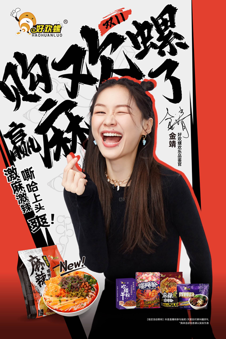 好欢螺双11携手金靖推出新品麻辣螺蛳粉