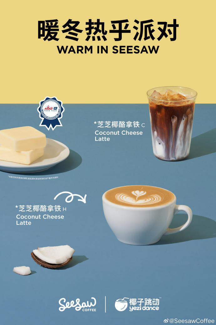 12月15日,SeesawCoffee x 椰子跳动推出联名新品「芝士椰酪拿铁」。据介绍,该款饮品使用椰子跳动联合安佳专业乳品换研制「椰酪乳」,椰子采用印尼老椰,椰香浓厚,奶酪选用安佳原制干酪,椰子与干酪结合,浓香翻倍。原文链接