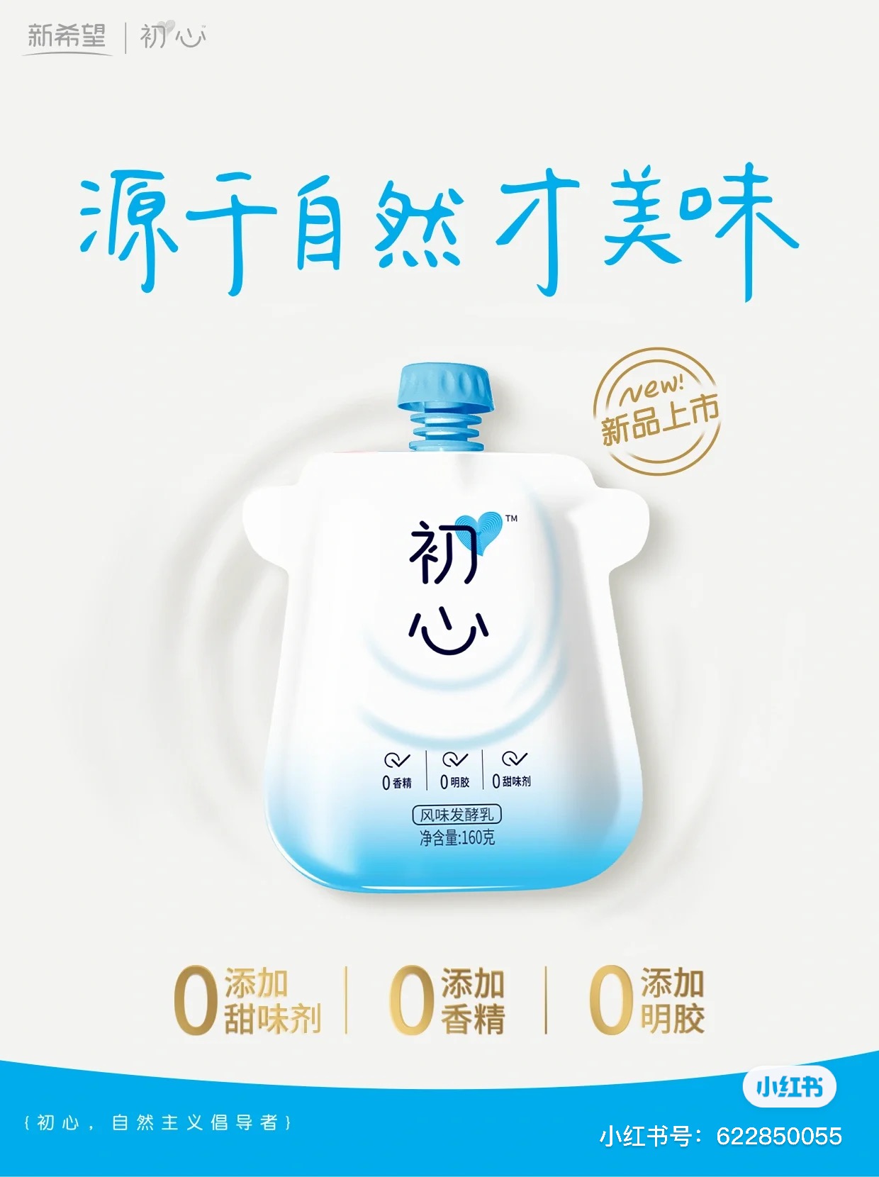 新希望旗下初心酸奶上新自立袋版包装,160g自立袋,小份量不浪费,携带方便。据悉,此款酸奶坚持原味发酵,0蔗糖、0添加,口感浓稠顺滑。原文链接