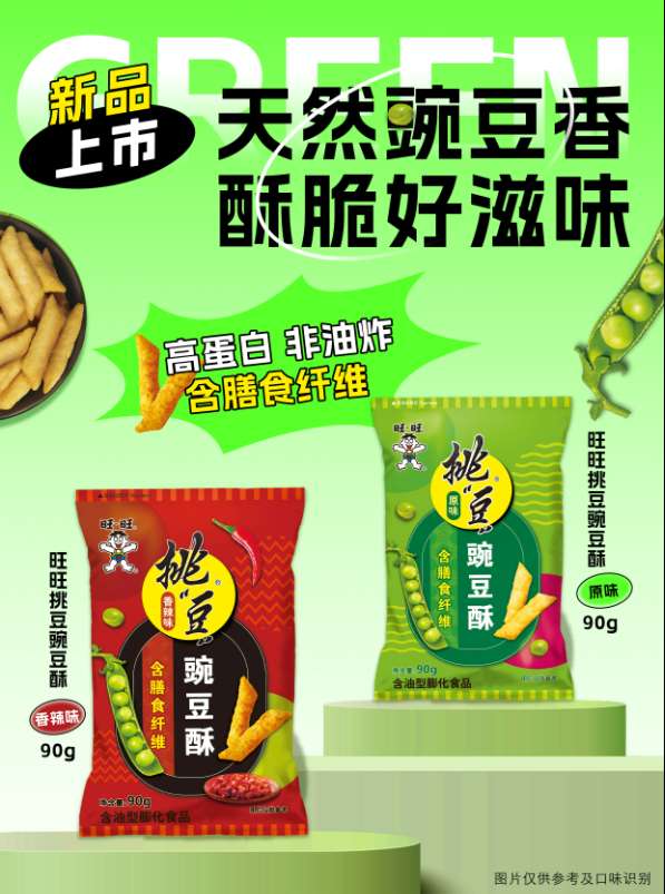 8月30日,旺旺挑豆豌豆酥推出原味、香辣味两款新品。产品使用非油炸工艺,富含高蛋白及膳食纤维,吃起来酥酥脆脆,还有豌豆的清香,美味轻负担。原文链接