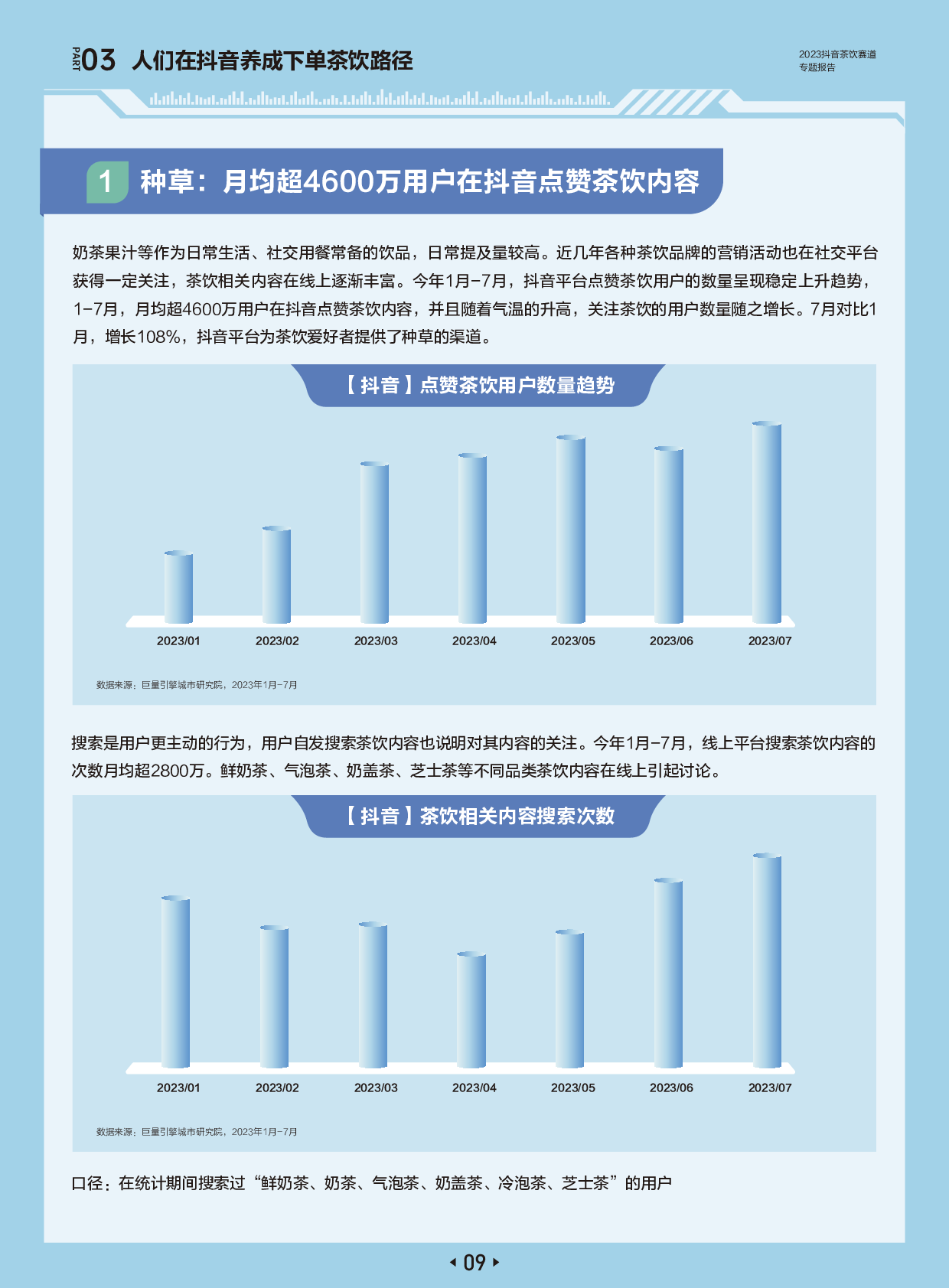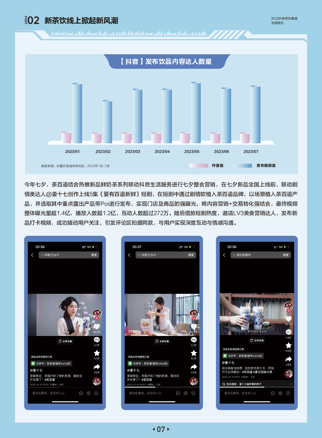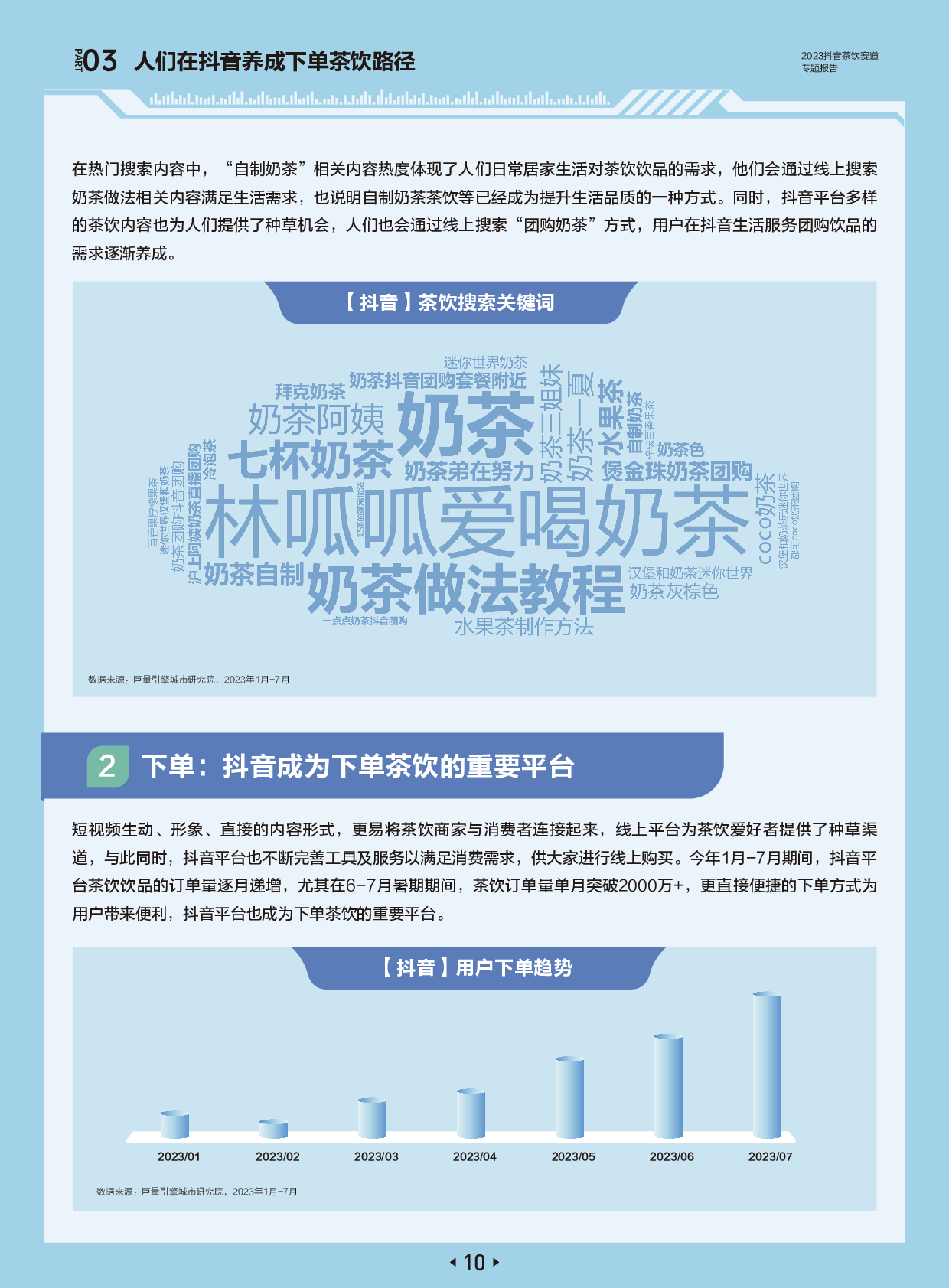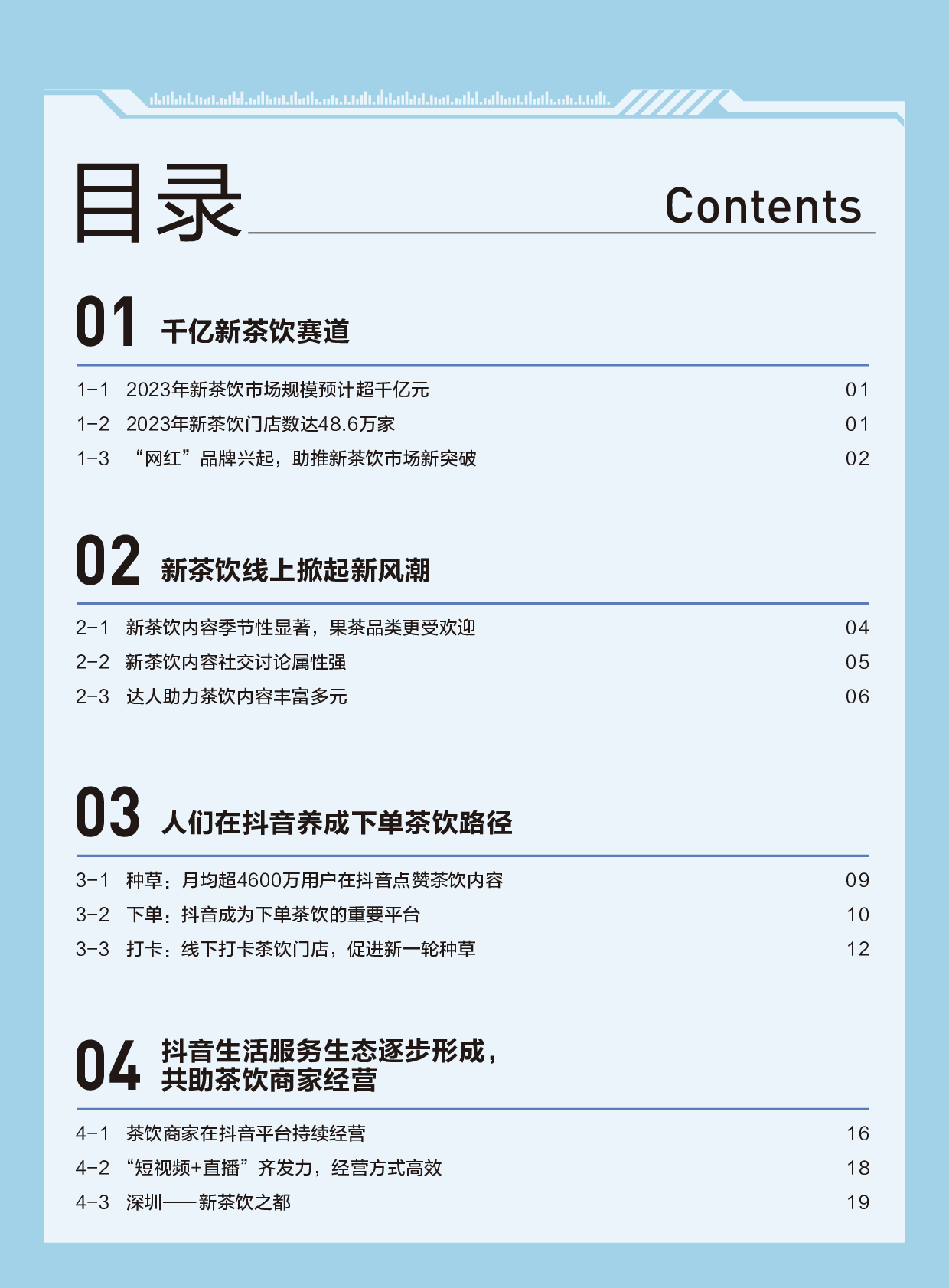 1、千亿新茶饮赛道 2、新茶饮线上掀起新风潮 3、人们在抖音养成下单茶饮路径 4、抖音生活服务生态逐步形成,共助茶饮商家经营