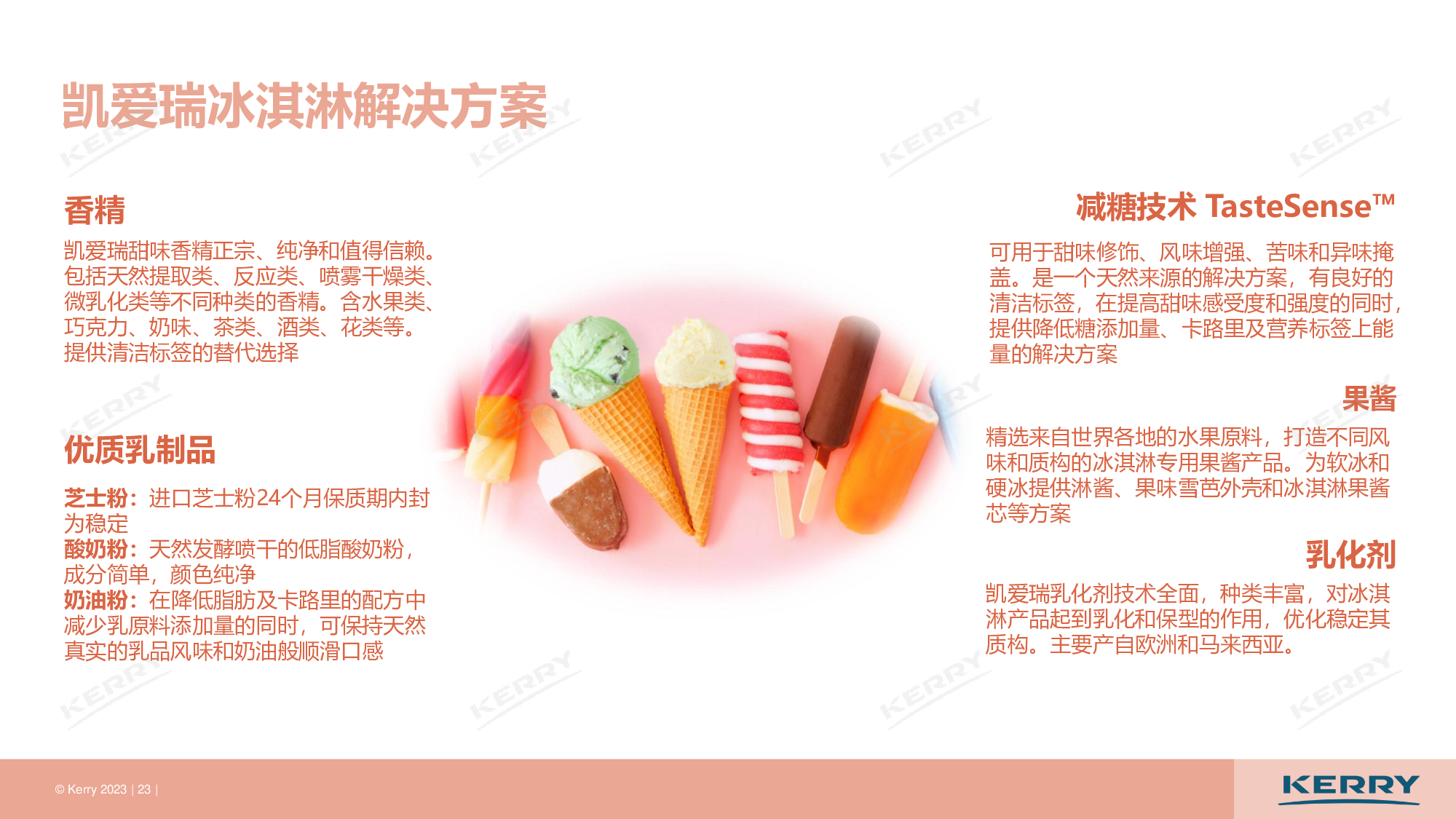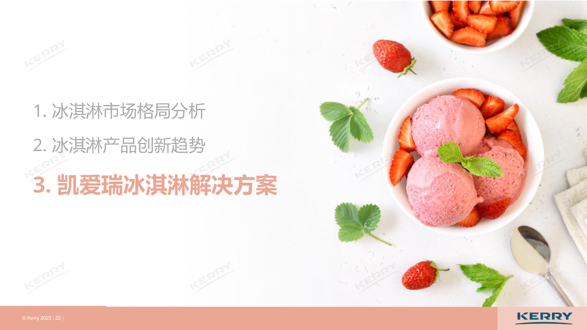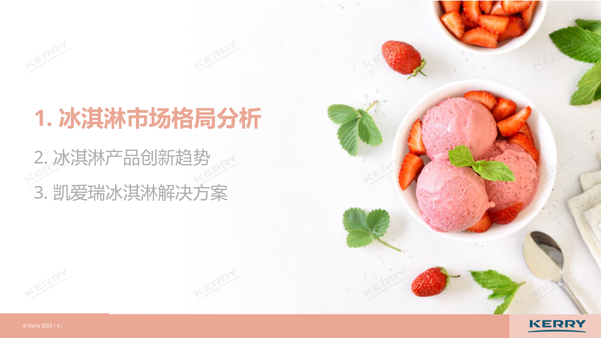 1、冰淇淋市场格局分析 2、冰淇淋产品创新趋势 3、凯爱瑞冰淇淋解决方案