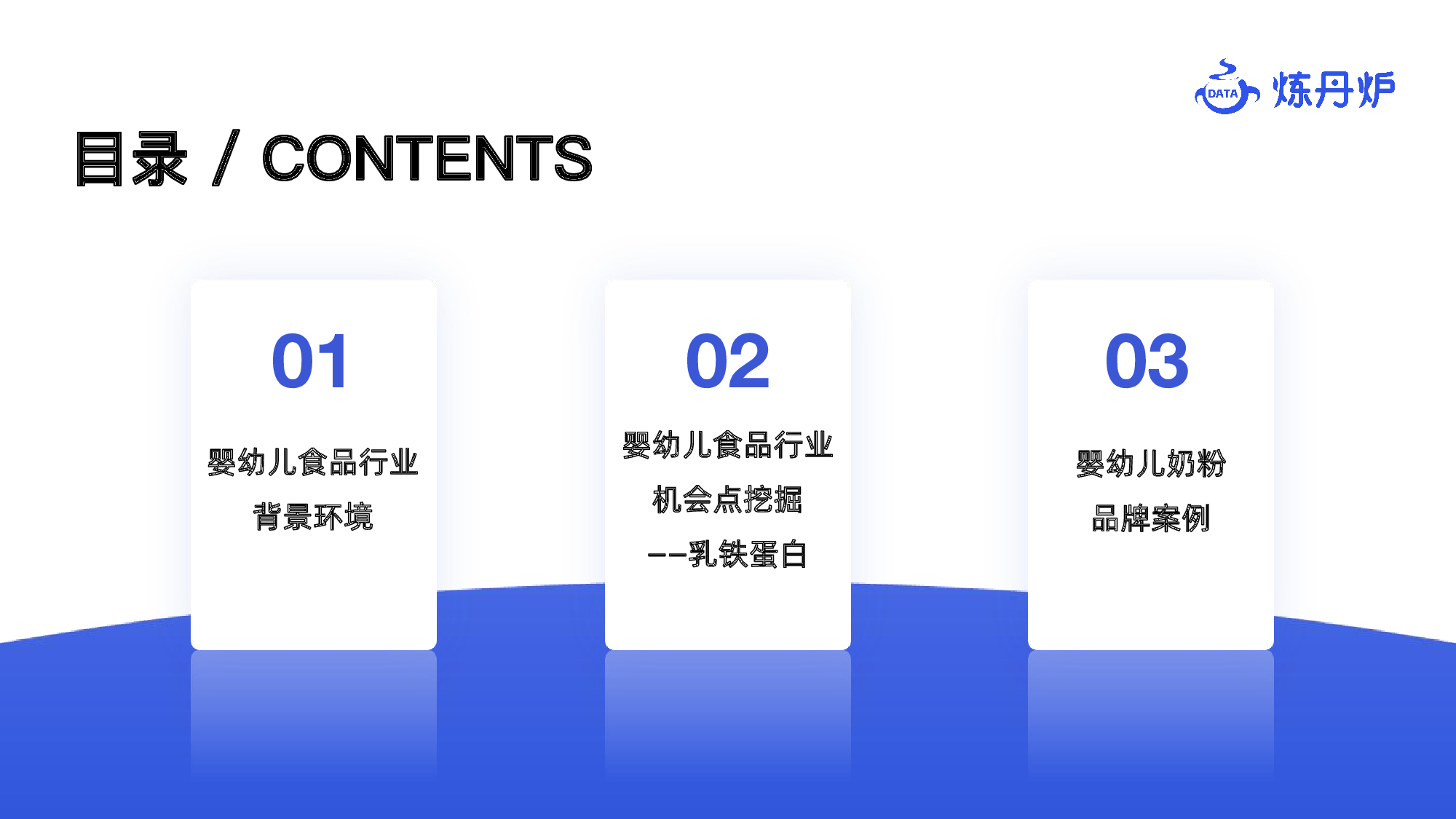 1、婴幼儿食品行业背景环境 2、婴幼儿食品行业机会点挖掘——乳铁蛋白 3、婴幼儿奶粉品牌案例
