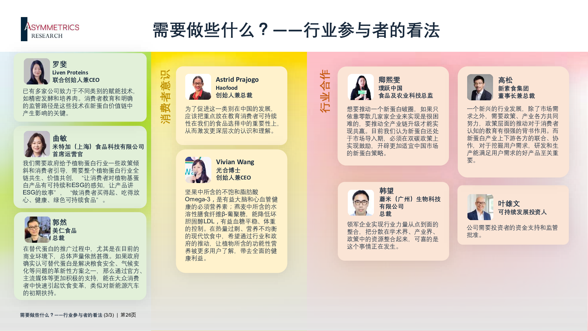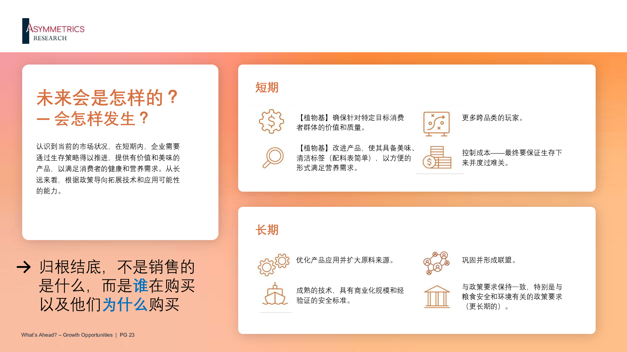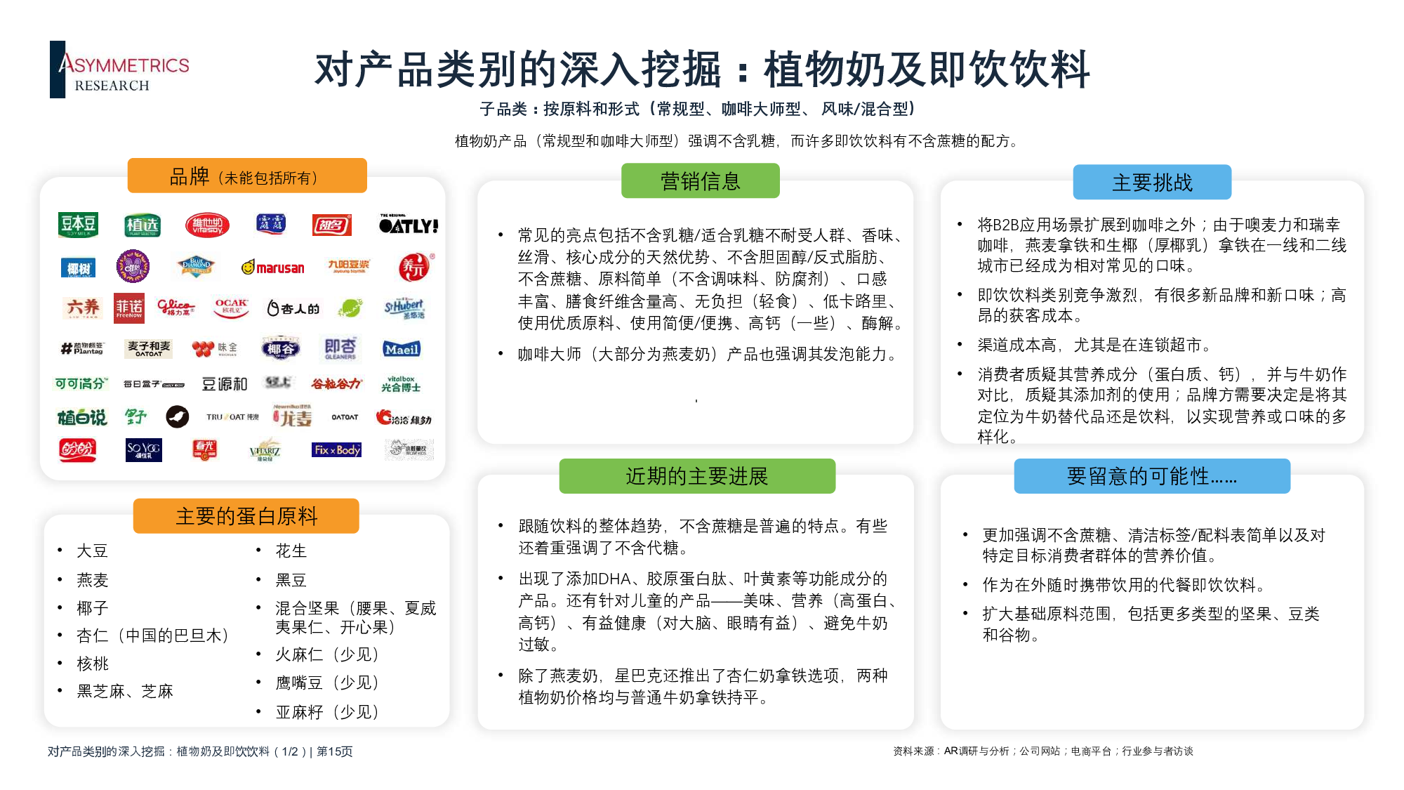 1、报告背景与大环境 2、现有主要类别:植物基奶及即饮饮料、植物基酸奶及冰淇淋、植物基肉及预制菜、植物基肉零食、植物基蛋白功能性食品 3、总体趋势 4、类别分析 5、展望:未来会是怎样的?