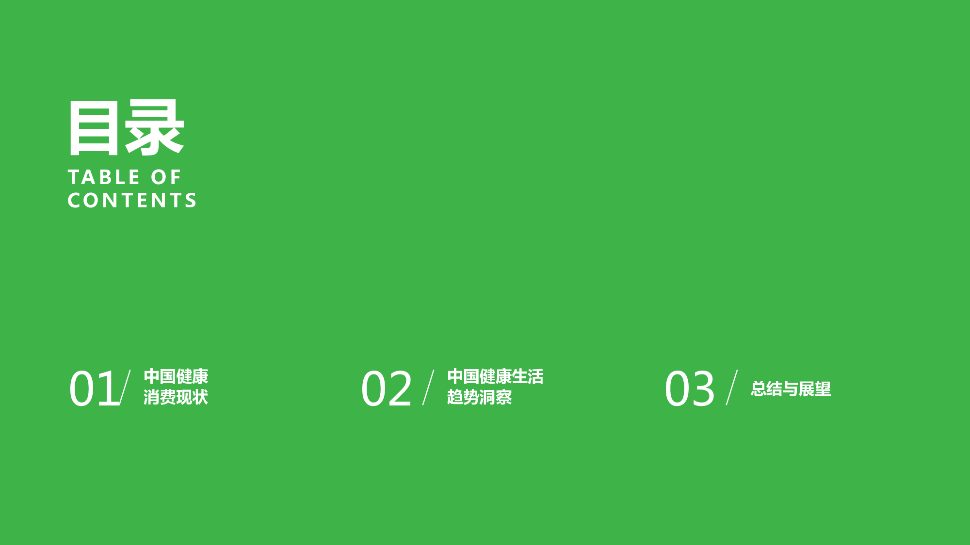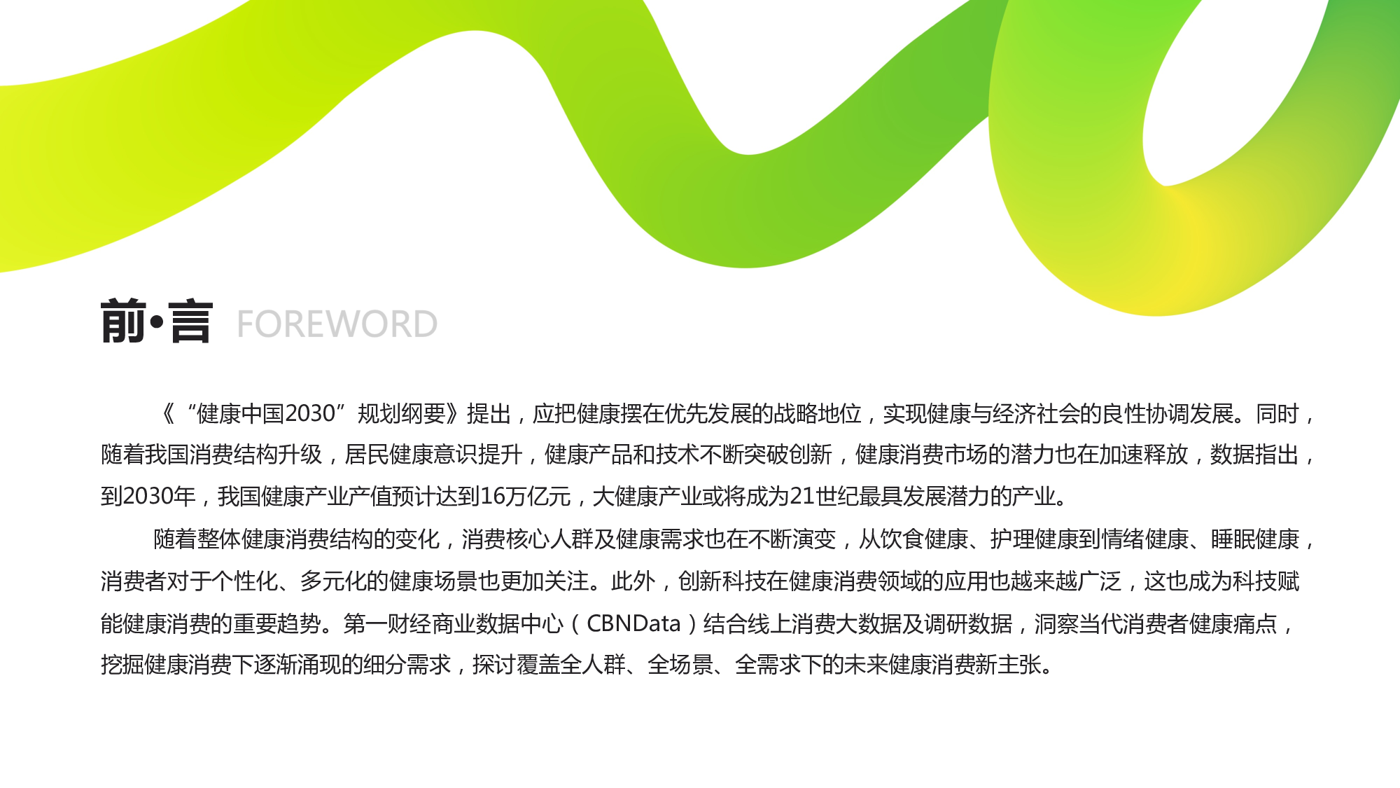 1、中国健康消费现状 2、中国健康生活趋势洞察 3、总结与展望